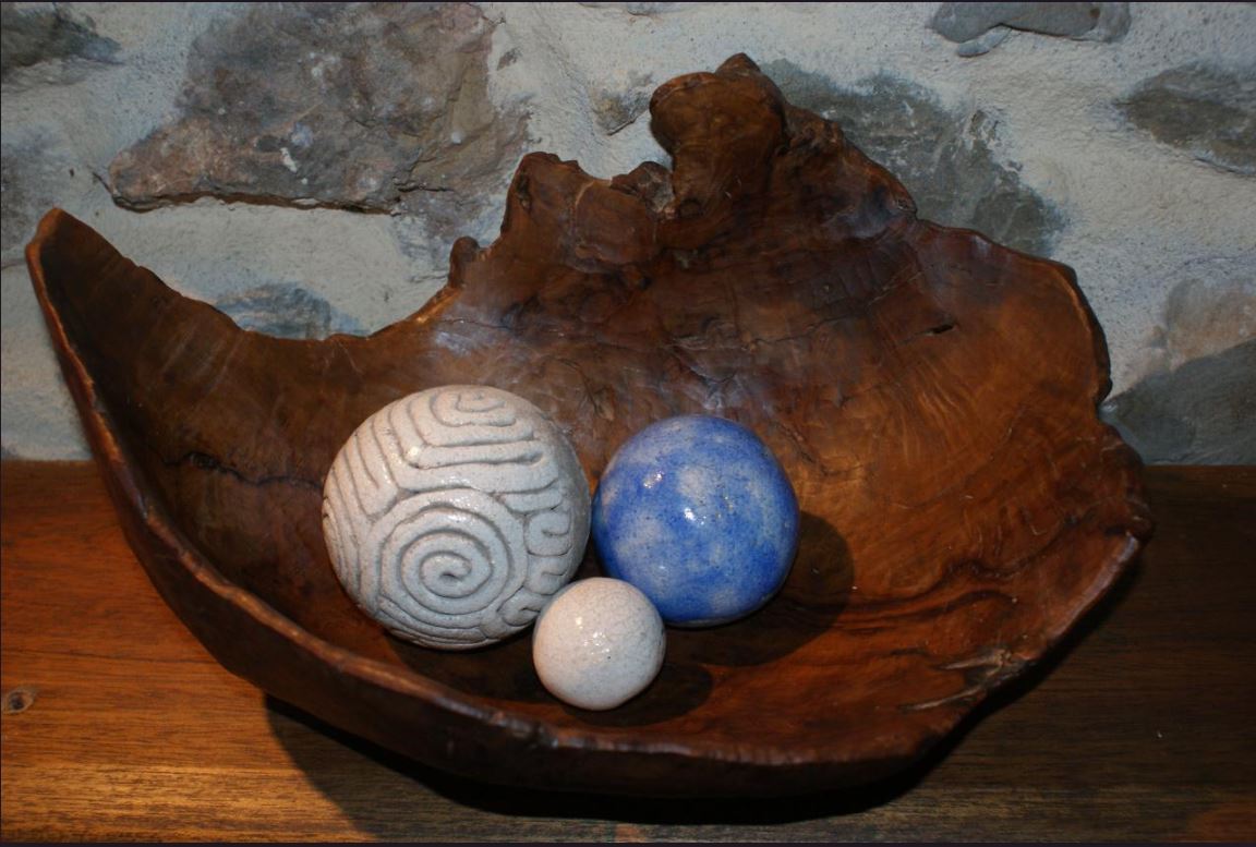 Une planète toute bleue, en grès émaillée turquoise et bleu foncé (sur le dessus). Oxydation due à la cuisson en réduction. Diamètre 18 cm. Cuisson Raku. Ré édition sur commande, me contacter (couleur, dimensions ...).