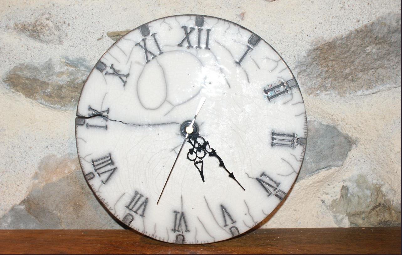 Horloge en grès, cuisson Raku. Réalisation sur commande, me contacter (motif, diamètre, type aiguilles, coût ...)